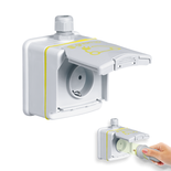 - Ausführung: 1-phasig, Schutzart IP44 (IP55 bei geschlossenem Deckel). Schlagefestigkeit IK08 (Aufputz Version, Kunststoff) und IK10 ( Unterputz Version, Metall-Druckguss)